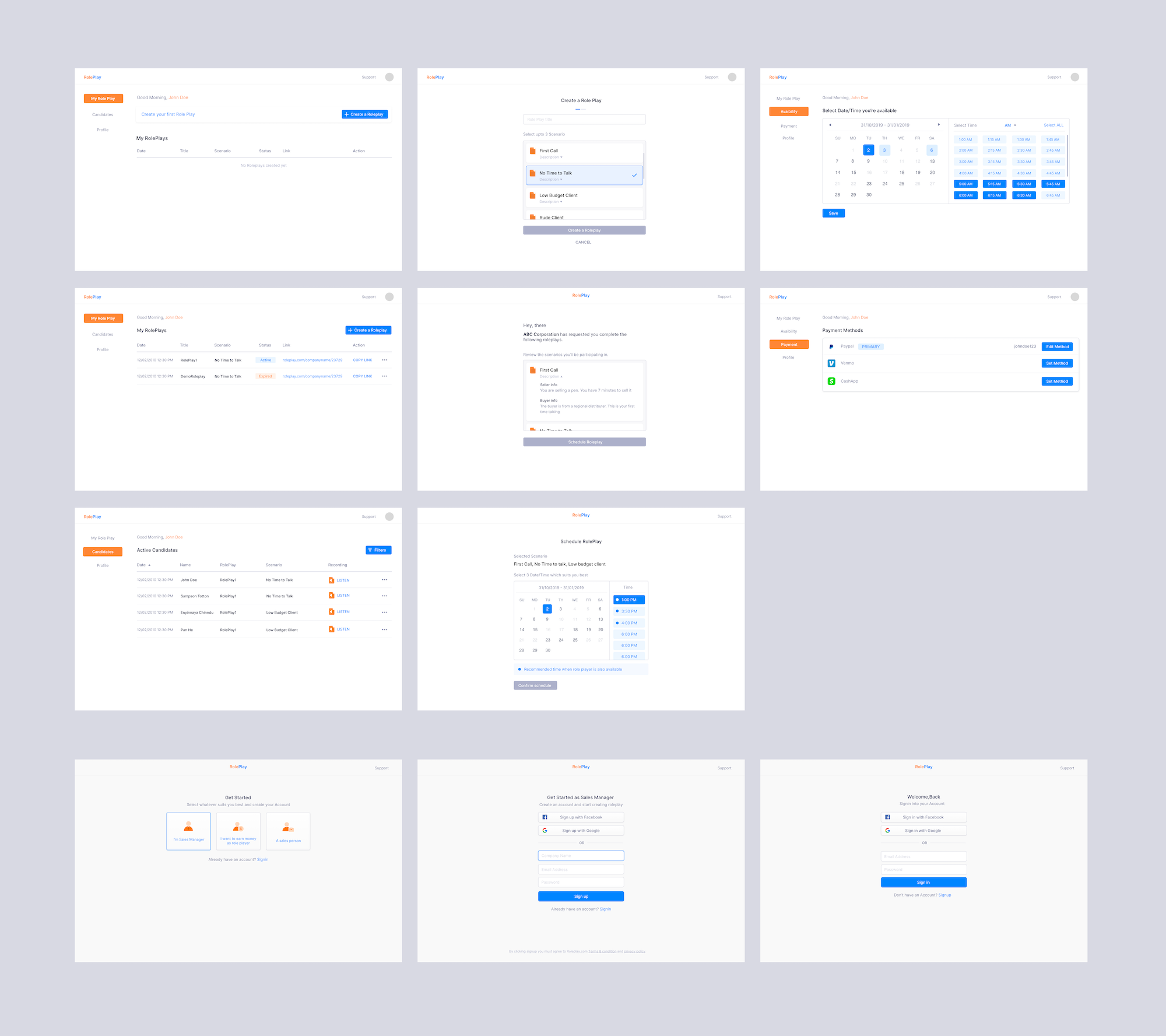 Roleplay web app UI/UX Design